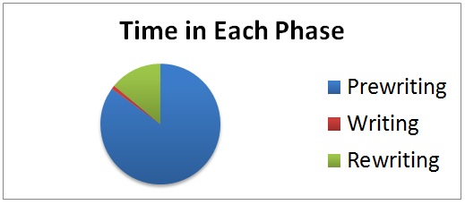 That’s not a lot of writing time, is it? Bear that in mind. The heavy lifting comes at the beginning and the end. I might argue that different styles/genres/types of writing might have the prewriting and rewriting percentages adjusted slightly, but the actual sitting down and churning out paragraphs of prose? That’s actually pretty negligible, which is why some folks are shocked they can actually manage to reach their goal in NaNoWriMo or similar challenges. You just have to get over the prewriting hurdle and then on the other end be willing to actually revise what you’ve written.